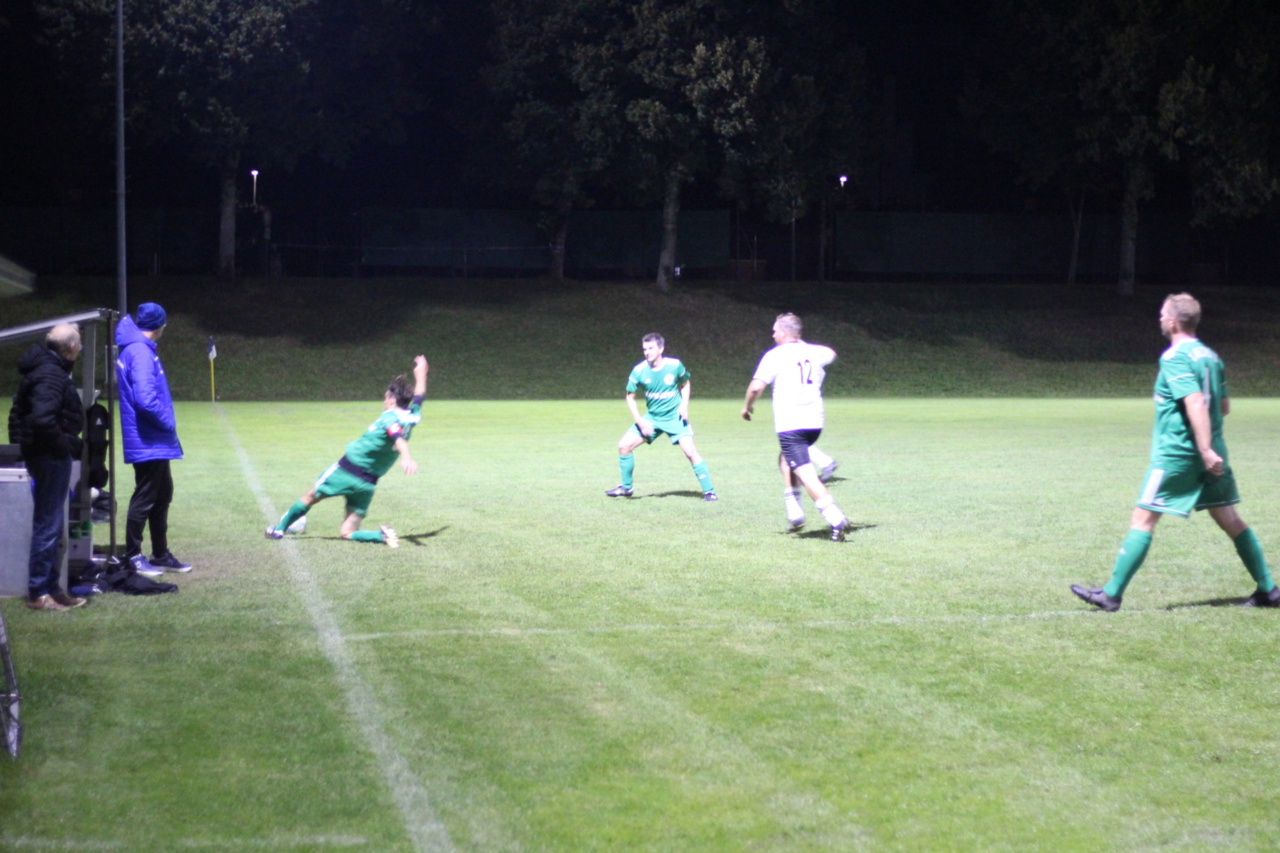 Erik hat dann in der 74. das unentschieden festgehalten, als er im eins gegen eins erst lange stehen geblieben ist und dann schnell genug unten war. Im direkten Gegenzug war es dann wieder einmal Basti, der auf dem direkten Weg zum Tor war aber vom letzten Verteidiger von den Beinen geholt wurde. Der hatte Glück das noch ein weiterer Verteidiger mitgelaufen war, sonst wäre es eine glatte rote Karte gewesen, so gab es (dunkel)gelb. Den Freistoß hat sich Baumi dann zurechtgelegt und nur ganz knapp am rechten Kreuzeck vorbei geschossen. Schade es wäre das Tor des Monats geworden.